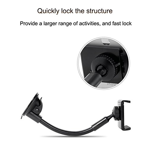 Cell Phone Holder for Car, Whirldy, 10.6in Long Arm, Universal Car Cradles Mounts Windshield / Dashboard for iPhone 7 Plus 6 Plus 6S 5S SE Samsung Galaxy S8 S6 S7 Edge 7 Nexus Stands