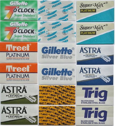 18 FEATHER 7 O'CLOCK ASTRA BIC SILVER BLUE TRIG SUPER-MAX BLADE SAMPLER