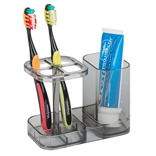 mDesign Bathroom Medicine Cabinet Organizer, Toothbrush and Toothpaste Holder - Smoke Gray