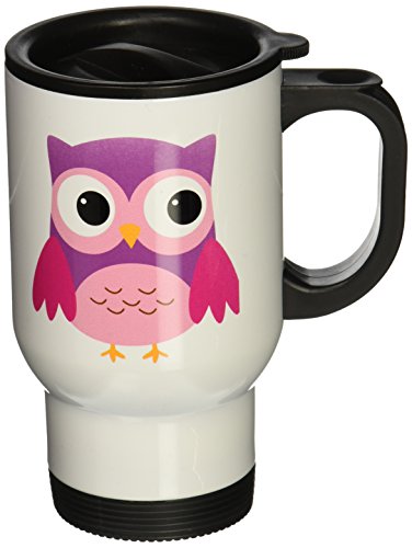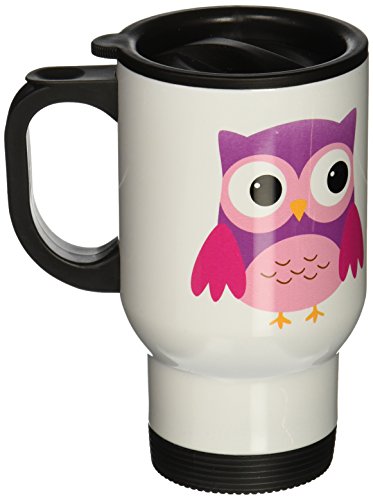 3dRose Cute Purple Owl Stainless Steel Travel Mug, 14-Ounce