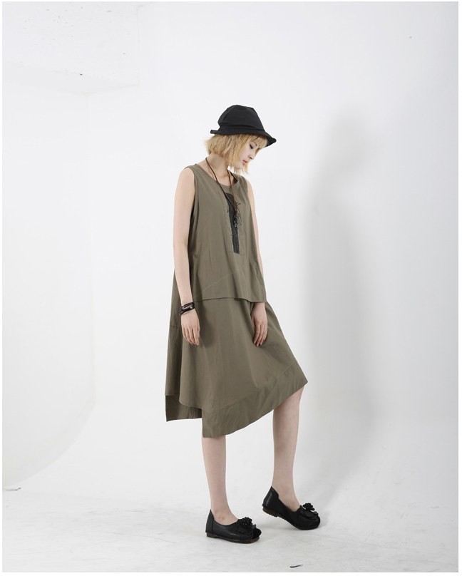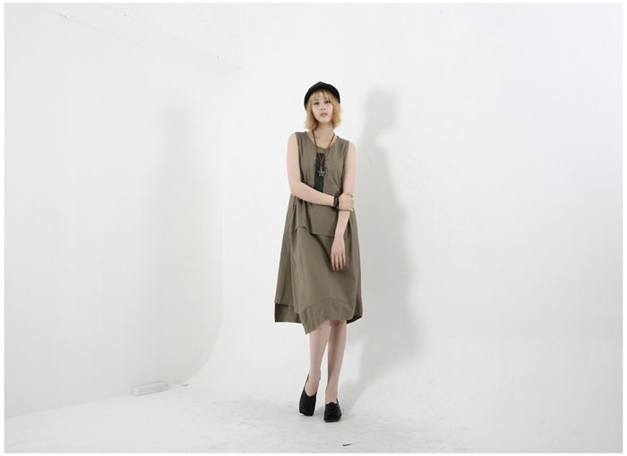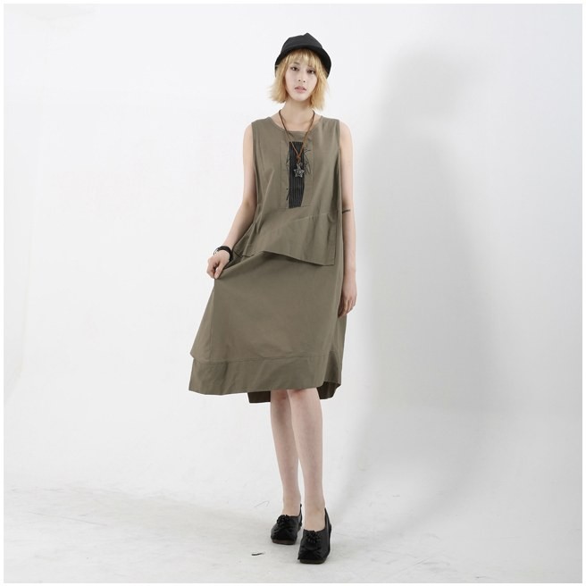 商品名:ワンピース レディース 膝丈 ノースリーブ 無地 春 2018 モード系 個性的 40代 ファッション