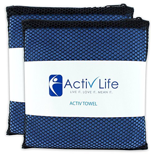 Activ Life Microsuede Gym Towels for Men & Women Athletes, Camping & Travel, Soft Absorbent Fast Drying Microfiber Hand & Face Towel with Mesh Storage Bag & Hang Loop for Quick Dry, 2 PACK