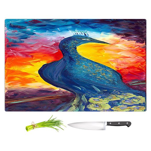 DiaNoche Designs CB-JessilynParkPeacock2 Jessilyn Park Peacock Cutting Boards from, Large 15" x 11"