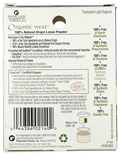 * A 100% natural origin loose powder, formulated with 10.6% certified organic ingredients, including safflower seed oil and jojoba seed oil to moisturize and corn starch to mattify the skin.