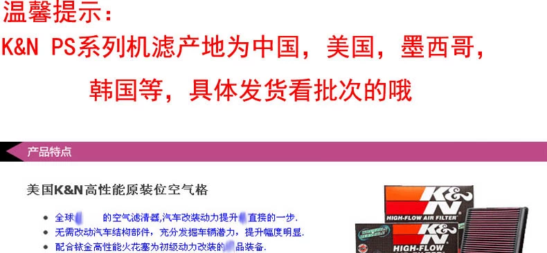 K&N高流量风格 美国原装进口 原装位安装!  这个星球上最神奇的空滤!经济!省油!环保!减少积碳!增加进气!提高马力!终身使用!