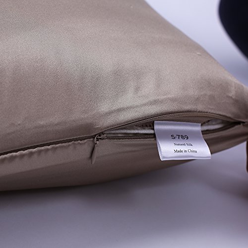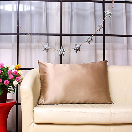 S·789 Satin Silk Pillowcase with Zipper Closure,DoubleSides 19 Momme Silk ,Standard 20x26 Inches Mulberry Silk ,Apricot Color Anti-aging Silk Pillow Cover with Gift Package