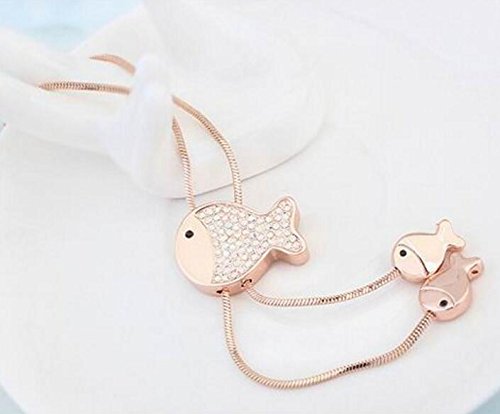 -. Title : Sojewe Women Fish Mother and Child Long Necklace White Crystal on Pendant Gold Plated Fashion Accessories Gift for Wife Girlfriend