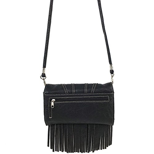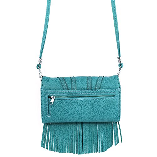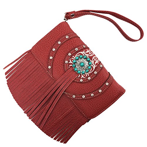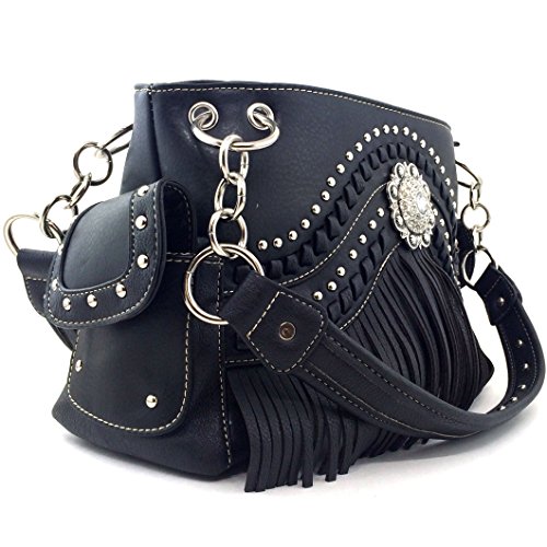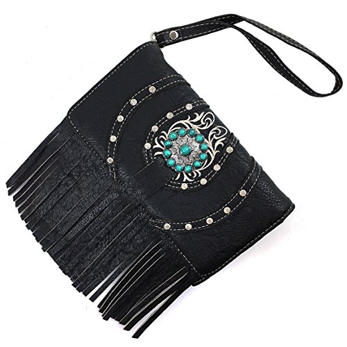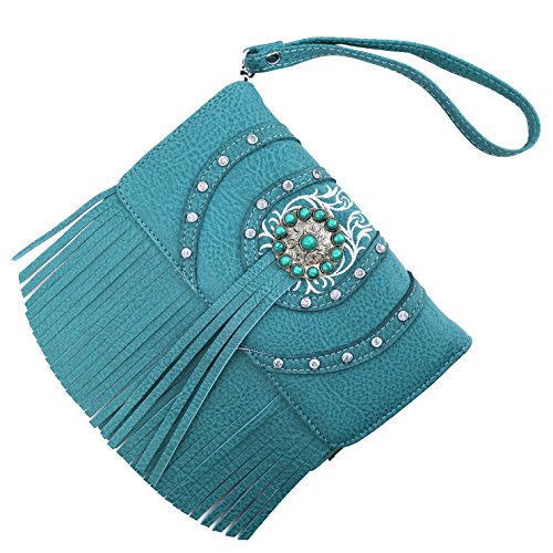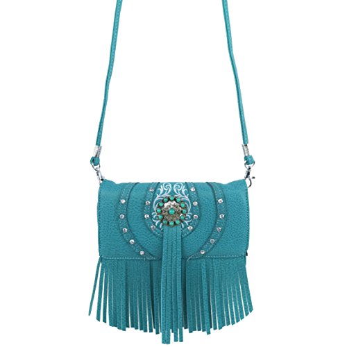 | Justin West Floral Embroidery Rhinestone Turquoise Concho Buckle Leather Fringe Shoulder Concea... |