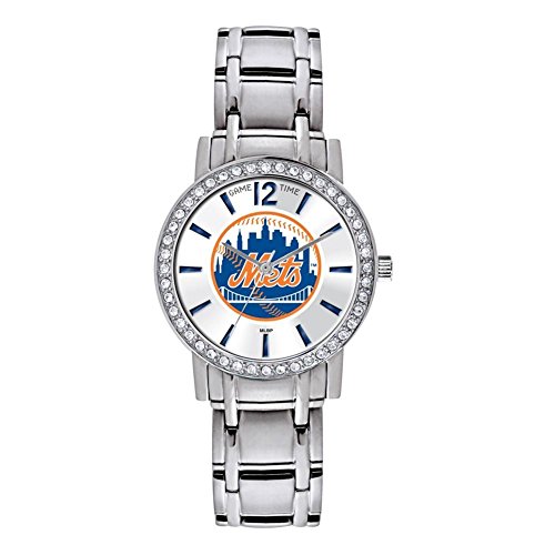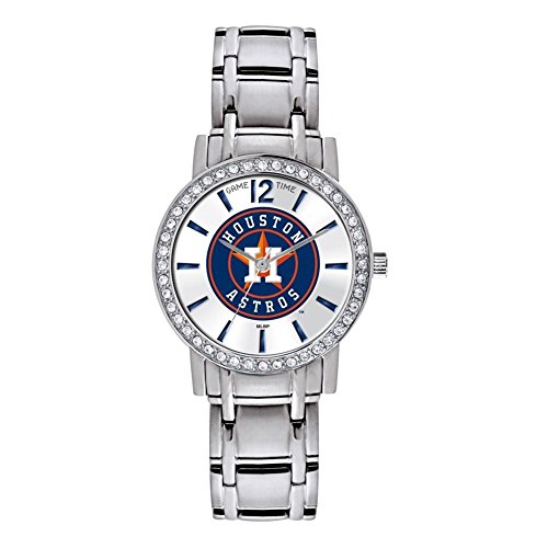 Women's Game Time MLB All Star Watch. A stylish way to show your around-the-clock support! For fans like you, there is no off-season. Features a stainless steel band complete with a crystal stone bezel framing your favorite baseball team's logo. With this Game Time MLB All Star Watch you'll look great on any occasion from game day to date night. Features: All stainless steel construction; Metal case with crystal stones look stylish; Sunray dial; Japanese quartz movement for precise timekeeping; Officially licensed team logo and colors; Water resistant down to 99'; Case size: 32mm. State Team. Order yours today! Women's Game Time MLB All Star Watch