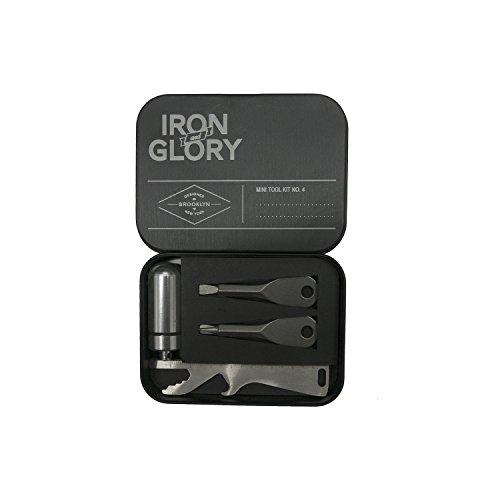 Iron and Glory Mini Tool Kit No. 4 Keychain, Stainless Steel: flathead and Phillips setting screwdrivers, pill case, bottle opener, ruler and hex wrench
