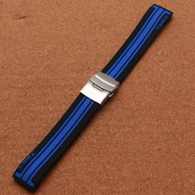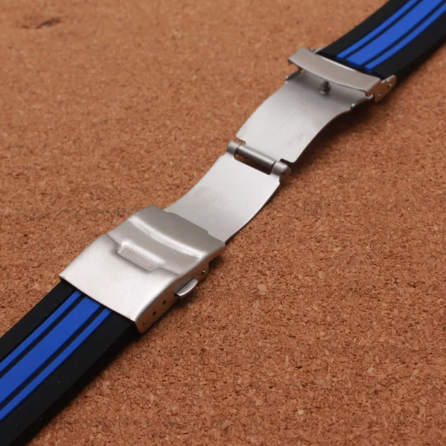 | [해외] 특별 손목 새로운 도착 블랙 혼합 블루 컬러 시계 스트랩 팔찌 무료 버클 배포 21 미리메터 고무 밴드 |