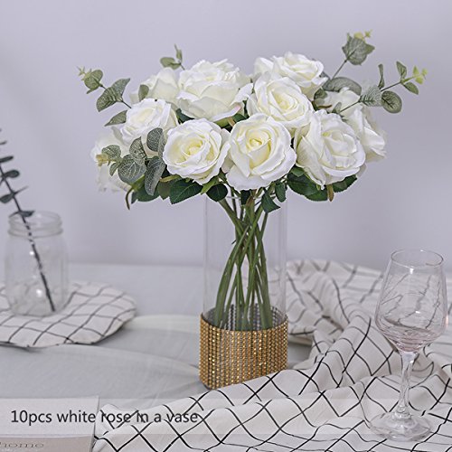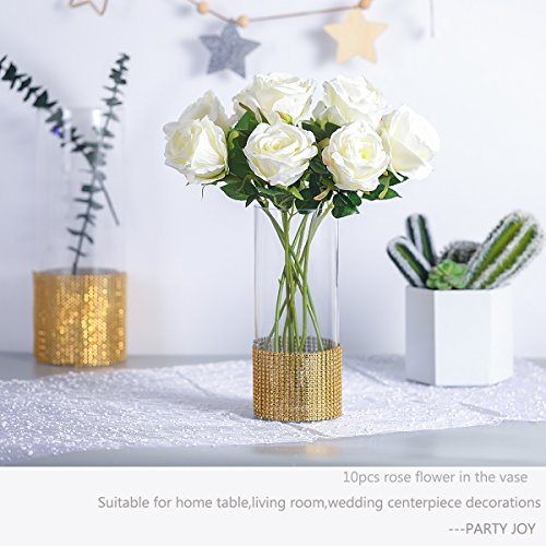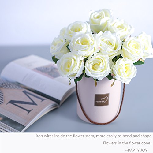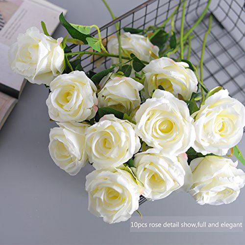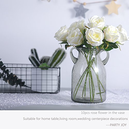 PARTY JOY Vintage Artificial Silk Rose Flower Bouquet Wedding Party Home Decor,Park of 10 (Milk White)