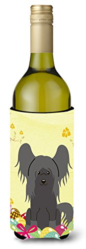 Caroline's Treasures BB6112LITERK Easter Chinese Crested Black Wine Bottle Beverage Insulator Hugger, 750ml, Multicolor