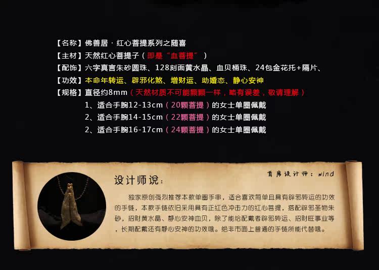 【随喜】红心血菩提子女手链 本命年开光转运朱砂佛珠手串
