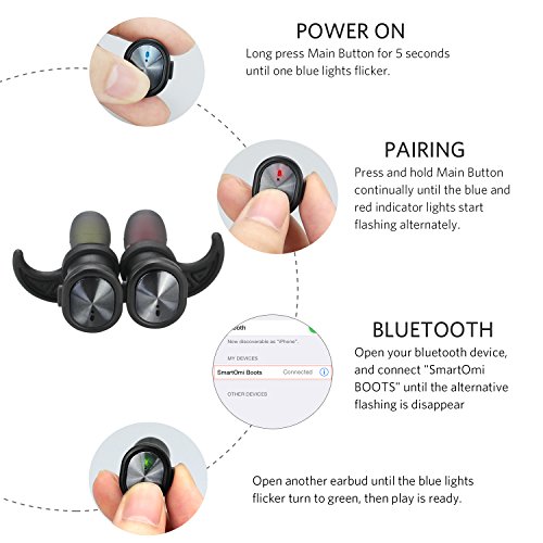 -. Title : Mini wireless Headphones, SmartOmi Boots-Upgrade Bluetooth Earbuds In Ear 4.1 with Mic and IPX7 Waterproof Cordless Stereo Headsets for iPhone, Samsung, HTC, LG on Sports or Driving