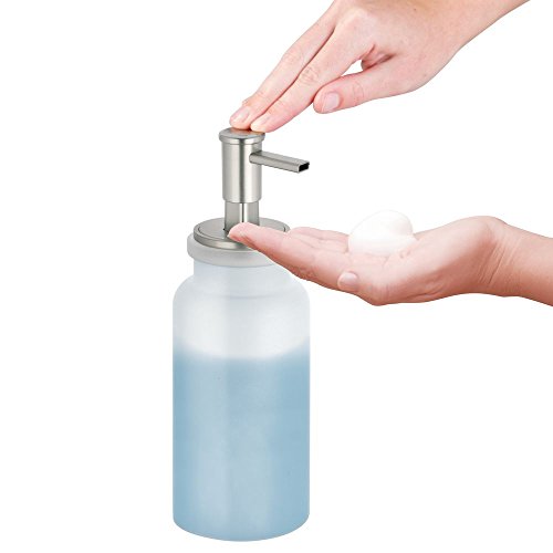 InterDesign Westport Glass Foaming Soap Dispenser Pump for Kitchen or Bathroom Sinks, Frost/Brushed