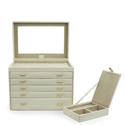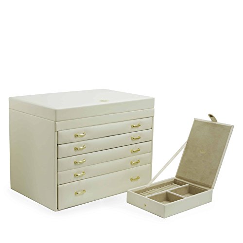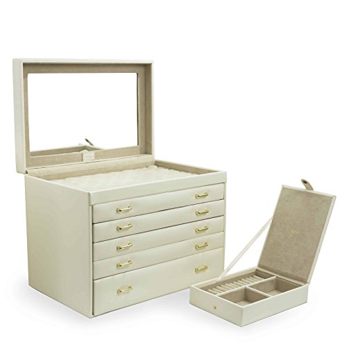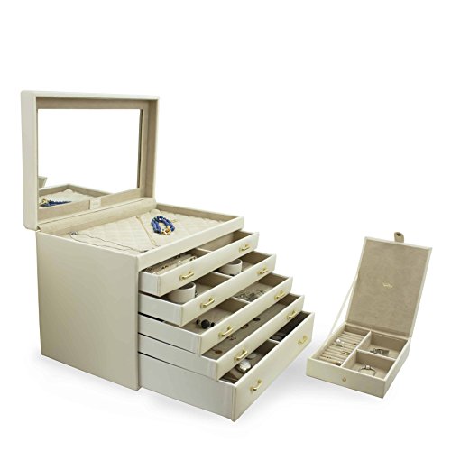 Cordays Extra Large Complete Jewelry Dresser Box Finely Handcrafted in Premium Quality Vegan Leather with 5 Drawers and Travel Case CDL-10029