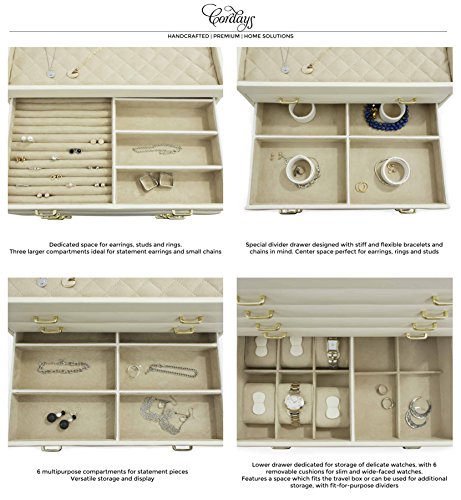 KEEP YOURSELF ORGANIZED: Generous storage capacity, perfect for all your essentials. The multiple divisions allow perfect organisation of earrings, rings, pendants, bracelets, watches and all kinds of jewelry, both statement pieces and small accessories DIMENSIONS: 15.25 x 10.4 x 12 inches