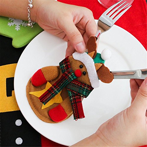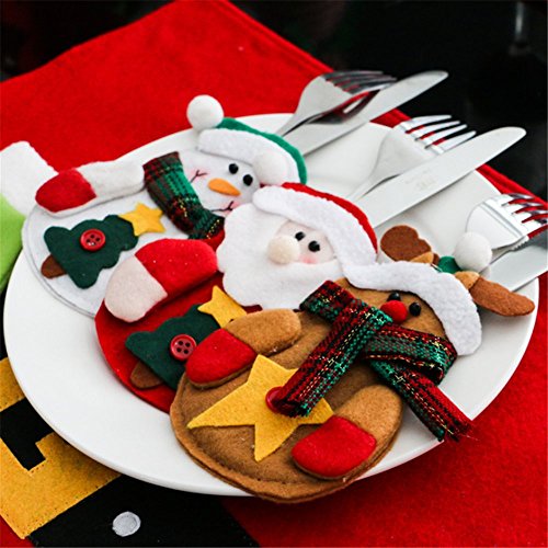 3Pcs Christmas fork holder bag Kitchen Silverware Holders Pockets Suit Santa Snowman Elk Christmas Party Decoration