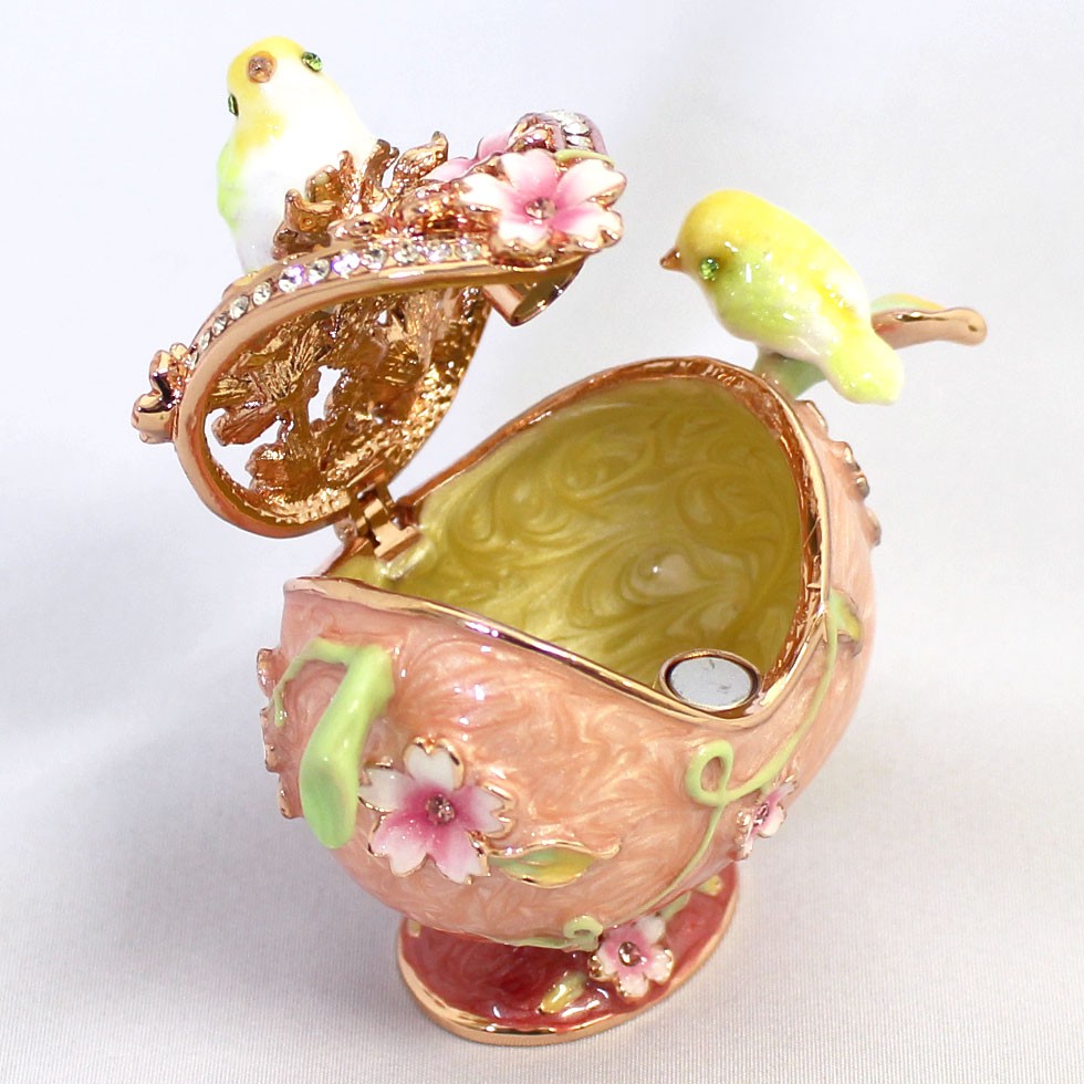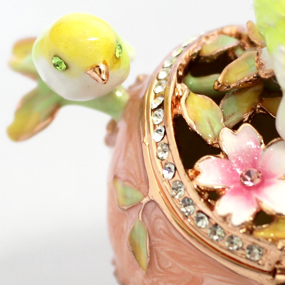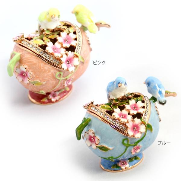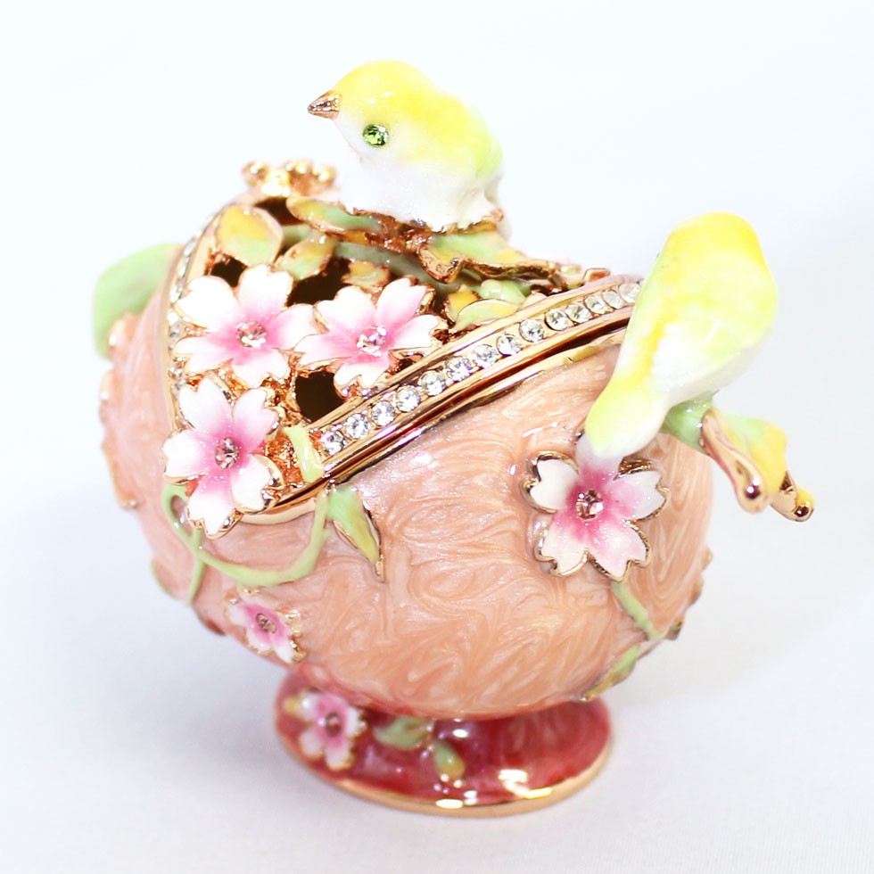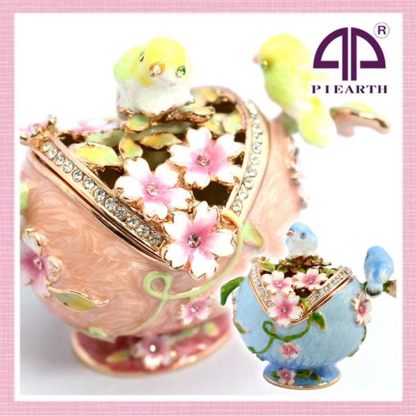 | ジュエリーボックスと言えば、指輪やピアス、ネックレスなどのアクセサリーを入れる引き出し型のケースを思い浮かべる方が多いかもしれません。 ピィアースのジュエリーボックスは、動物や花などをモチーフに作られ、合金製でずっしりとした重さがあります。また高品質のクリスタルガラスを贅沢に使用。まるでジュエリーボックスそのものが宝石のような、高級感溢れる仕上がりです。 小物入れとしても使えるように開閉口には磁石が取り付けてあり、アクセサリーなどなくしやすいアイテムの収納ができます。キラキラと美しく輝く宝石箱は、そのまま飾って楽しめるインテリア雑貨として多くの方に愛されています。 国内トップクラスのジュエリーボックスメーカーであるピィアースは、2004年ごろから本格的に宝石箱の製造を始め、現在のジュエリーボックスはなんと300種類以上。大規模展示会でもご好評いただいており、全国有名百貨店でも販売されています。 自社工場でひとつひとつ丁寧に手作りし、原型作成、研磨、加工、着色、小さなクリスタルガラスの取り付けなども全て手作業で行われるこだわりのハンドメイド品。完成後は厳しい検品の後、丁寧に梱包作業をしお客様にお届けしております。 ピィアース商品は、全国有名百貨店および全国有名宝石店チェーンにてお取り扱いいただいている高品質商品です。 ★自分へのご褒美に…コレクションして並べて飾ると、さらにかわいらしさUP! ★恋人へのプレゼント…中にアクセサリーを入れて、サプライズな贈り物として ★家族への感謝ギフト…お母さんや姉妹へ、日頃のありがとうの気持ちを込めて ★誕生日プレゼント…お友達の喜ぶ顔が見たいから、いつもと違うキラキラギフトを ★小さな女の子へ…まるでお姫様が使っているようなキラキラ宝石箱は女の子の憧れ! |