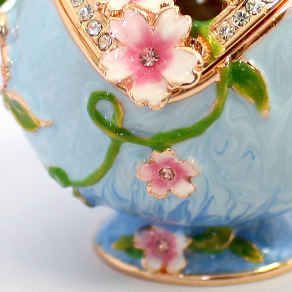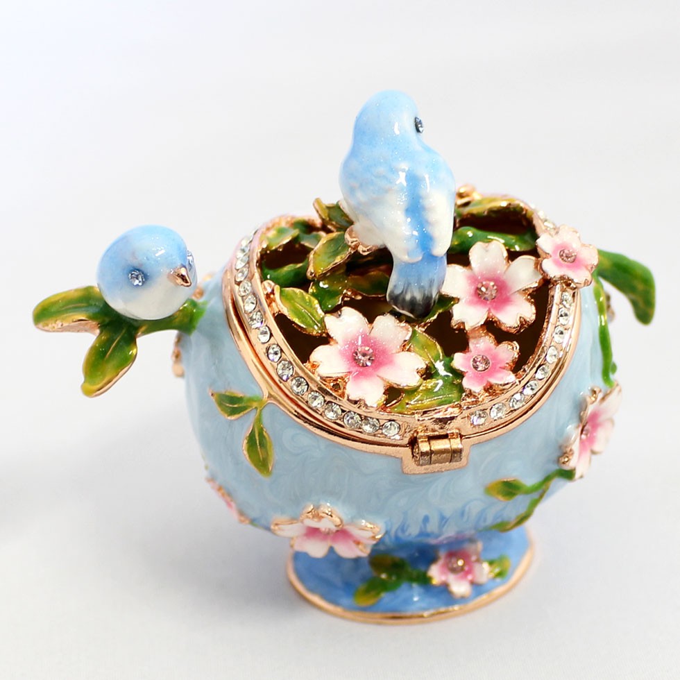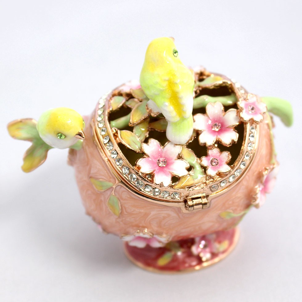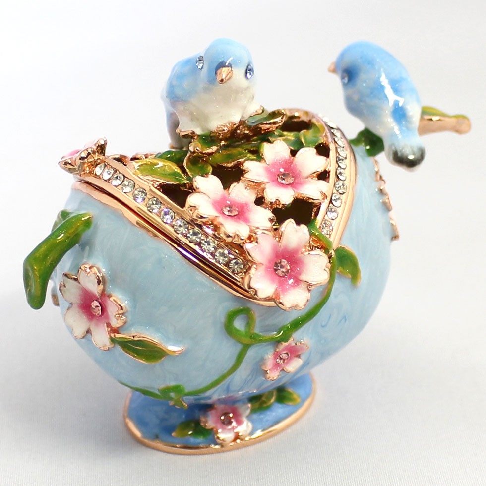 | ジュエリーボックスと言えば、指輪やピアス、ネックレスなどのアクセサリーを入れる引き出し型のケースを思い浮かべる方が多いかもしれません。 ピィアースのジュエリーボックスは、動物や花などをモチーフに作られ、合金製でずっしりとした重さがあります。また高品質のクリスタルガラスを贅沢に使用。まるでジュエリーボックスそのものが宝石のような、高級感溢れる仕上がりです。 小物入れとしても使えるように開閉口には磁石が取り付けてあり、アクセサリーなどなくしやすいアイテムの収納ができます。キラキラと美しく輝く宝石箱は、そのまま飾って楽しめるインテリア雑貨として多くの方に愛されています。 国内トップクラスのジュエリーボックスメーカーであるピィアースは、2004年ごろから本格的に宝石箱の製造を始め、現在のジュエリーボックスはなんと300種類以上。大規模展示会でもご好評いただいており、全国有名百貨店でも販売されています。 自社工場でひとつひとつ丁寧に手作りし、原型作成、研磨、加工、着色、小さなクリスタルガラスの取り付けなども全て手作業で行われるこだわりのハンドメイド品。完成後は厳しい検品の後、丁寧に梱包作業をしお客様にお届けしております。 ピィアース商品は、全国有名百貨店および全国有名宝石店チェーンにてお取り扱いいただいている高品質商品です。 ★自分へのご褒美に…コレクションして並べて飾ると、さらにかわいらしさUP! ★恋人へのプレゼント…中にアクセサリーを入れて、サプライズな贈り物として ★家族への感謝ギフト…お母さんや姉妹へ、日頃のありがとうの気持ちを込めて ★誕生日プレゼント…お友達の喜ぶ顔が見たいから、いつもと違うキラキラギフトを ★小さな女の子へ…まるでお姫様が使っているようなキラキラ宝石箱は女の子の憧れ! |