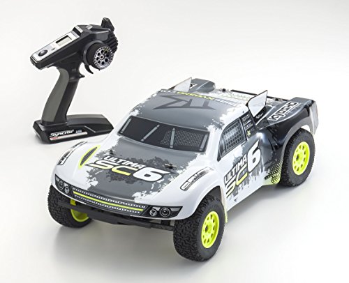 Studio : Kyosho Corporation of America Publisher : Kyosho Corporation of America Binding : Toy Product Description Short course trucks are taking the world by storm in America, and are now available as R/C machines made by the most experienced R/C manufacturer in the world. The SC6 represents a couple of firsts in the RC market. Where many other companies use cheaper, lower-quality materials in their RTR vehicles compared to their racing counterparts, the Ultima SC6 uses almost all the same molded parts made for the full-blown racing truck, as standard parts in the SC6 Ready Set. The quality standard is so high for the SC6 Ready Set that using the molded parts developed for the racing kit is imperative. A small number of the less critical parts are molded using slightly different material, but all of the important molded stuff is the same as the race truck. Additionally, the SC6 is the first and only of its kind to configure the chassis with the more aggressive mid-motor chassis configuration. Based on the 2013 Electric Off-Road World Championship RB6 design, the Ultima SC6 has been modified for optimal short course performance from race data and driver feedback. Superior handling performance from the mid-ship layout, smooth suspension movement with big-bore oil shocks, and minimal drive loss due to the gear differential, all combine to deliver the most dynamic performance ever available. Equipped with the newly-developed drive one-piece motor/ESC power unit really packs a powerful punch. It will provide all the power need for most customers, but for the blood-thirsty enthusiasts, the SC6 will also fit component gear, and handled the horsepower of the most aggressive modified motors. The Ready Set comes with a low-slung, pre-cut and printed body. The truck is designed to accept standard offset wheels with 12mm hex hubs and standard tires, so there are dozens of choices of tires if you decide it's time for some racing. Simply add your own battery to the chassis and four AA alkaline for the transmitter and you can be enjoying the dynamic performance of short course truck racing. 0