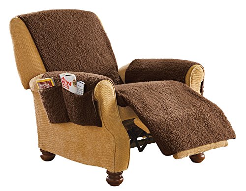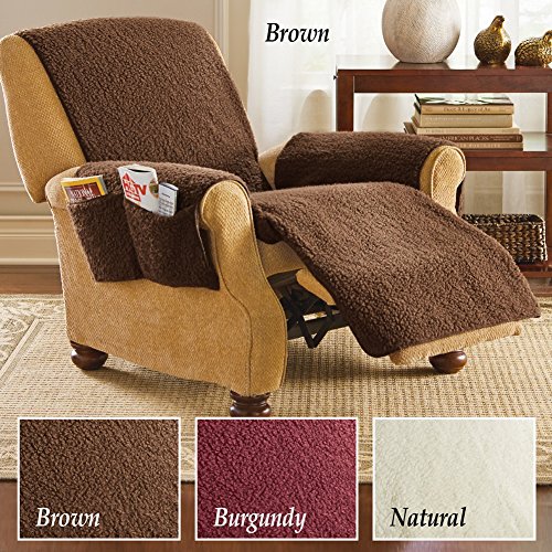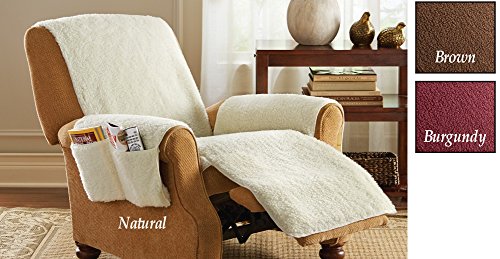 Studio : Collections Etc Publisher : Collections Etc Product Description Dress up your favorite recliner, protect it from stains and make it more comfortable than ever with this soft, warm, cover that looks and feels like real sheepskin. Enjoy the convenient side pockets which hold remotes, reading materials, tablets and more. The one-piece cover features elastic straps to attach securely to your recliner. Machine washable. 100% polyester. 64 1/4"L x 75 1/4"W. Colors available in Natural, Brown, or Burgundy. 0