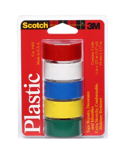 Scotch Super Thin Waterproof Vinyl Plastic Colored Tape, .75-Inch by 125-Inch, 5-Pack