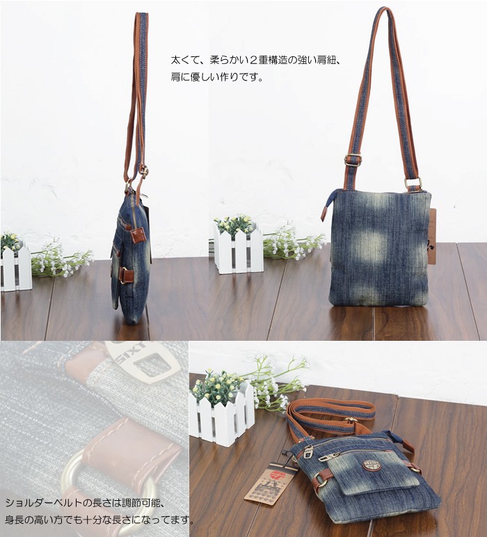 ■カジュアルな服に合わせやすく、爽やかな印象にしてくれるデニムバッグは、 一つあるととっても重宝します。季節を問わず、夏でも冬でも使えます。 ■程よいサイズがオシャレなショルダーバッグ、 財布やスマホ等の小物がしっかりと入る優れモノ。 ■コンパクトなサイズ感ですが、ポケットを多数設けているので整理のしやすさはバツグン。 ■口が大きく開くので物の出し入れがしやすい! タウン使いにはもちろんの事、レジャーや旅行にもおすすめ。 ■旅行の時に重宝するのは、小さめのバッグ。 部屋に荷物をおいてホテルのレストランへお食事に。 そんな時にお財布と携帯だけ持っていくのにとっても便利♪ |