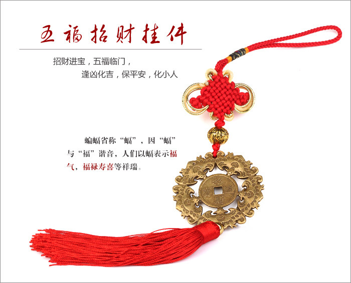 Section "Five Lucky" car hanging pendant, not only can be placed in the car, also can be placed indoors or carry, is entrusted with the blessings and expectations for the rich blessing to bring culture to accompany you all the way to beautiful safe future.