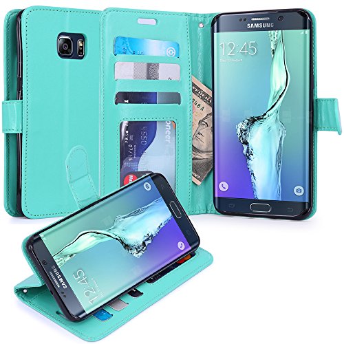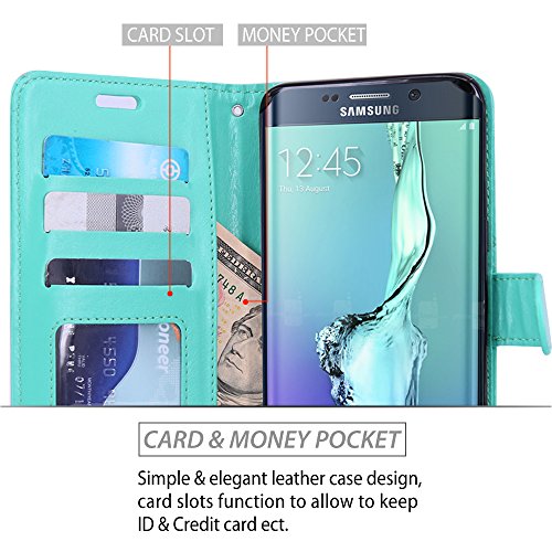 S6 Edge Plus Case, LK S6 Edge Plus Wallet Case, Luxury PU Leather Case Flip Cover Built-in Card Slots & Stand For Samsung Galaxy S6 Edge+ (Mint)