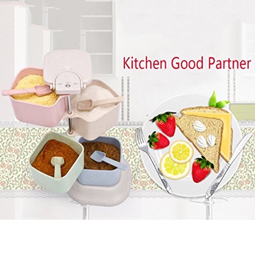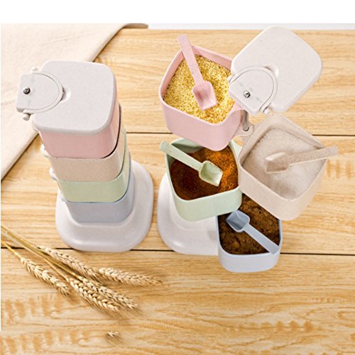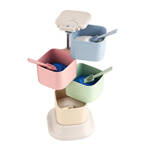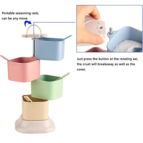 Spice Rack Condiment Storage Container Rotating Portable 4 Tier With Spoon Seasoning Pots for Salt Pepper Sugar