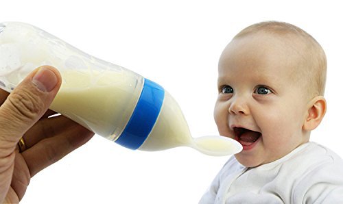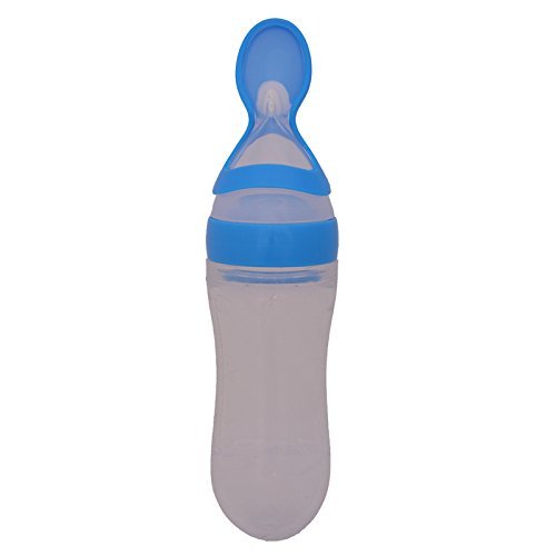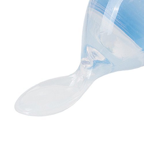-. Title : Baby Feeding Bottle with Silicone Spoon Attached, Blue