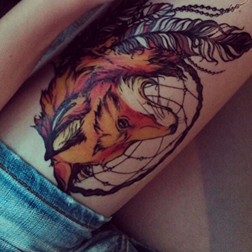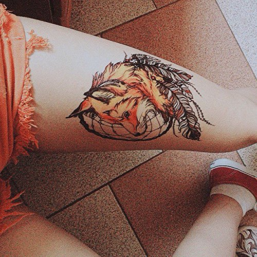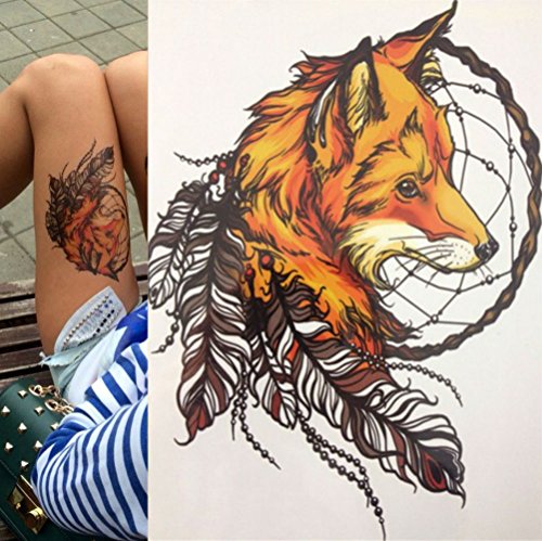 AKOAK 1 Pcs Exotic Sexy Cool Waterproof Temporary Tattoo Stickers Yellow Fox and Feather Cool Beauty Tattoo