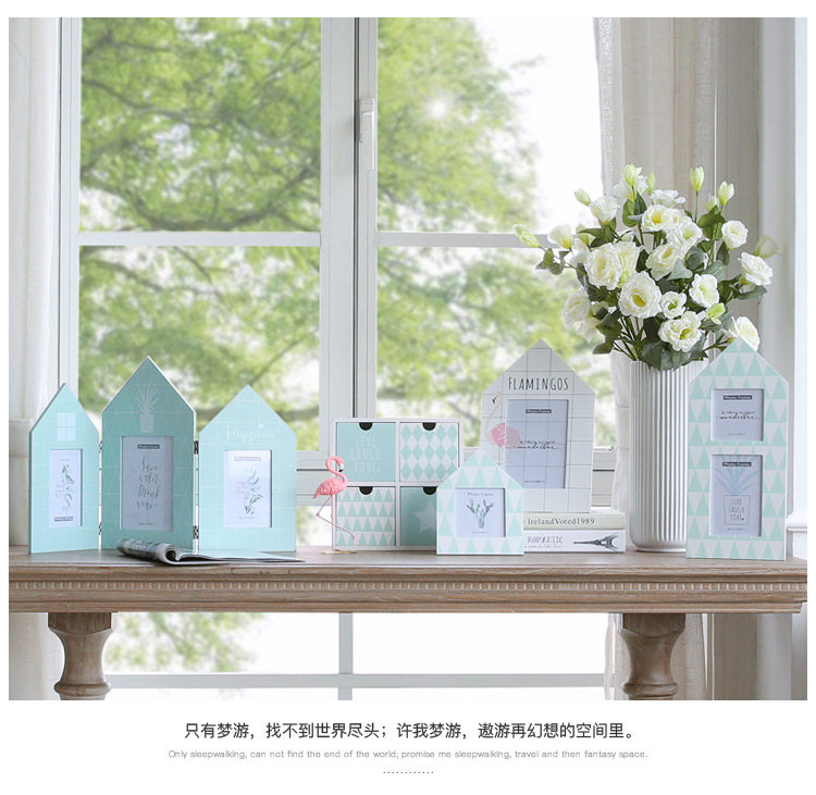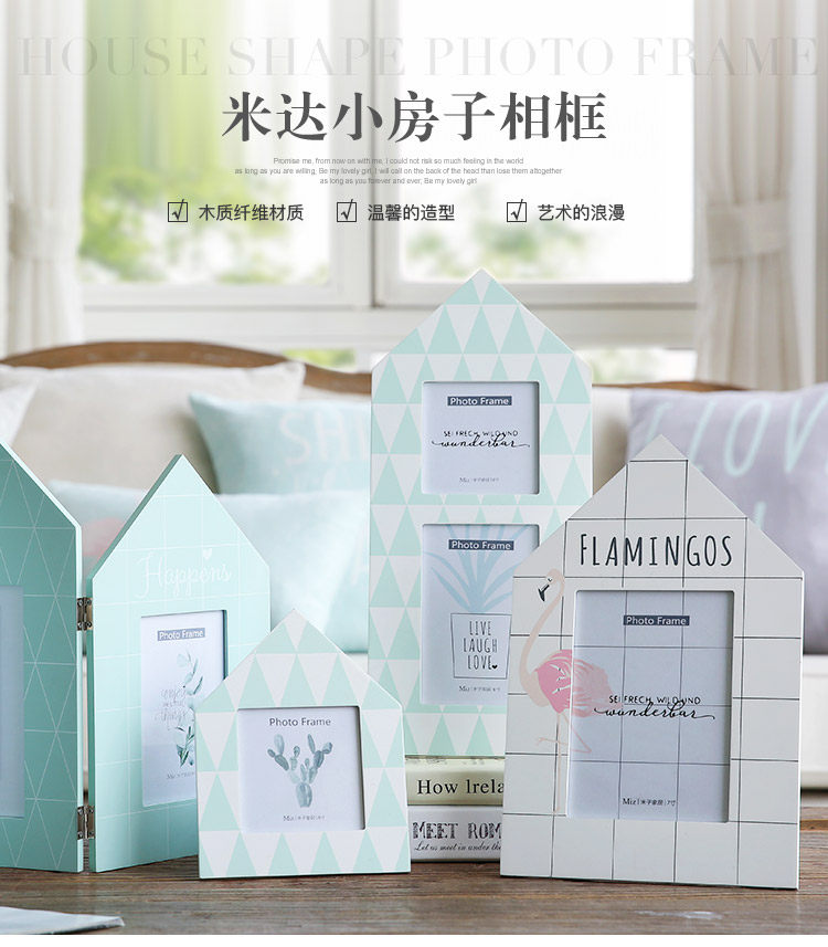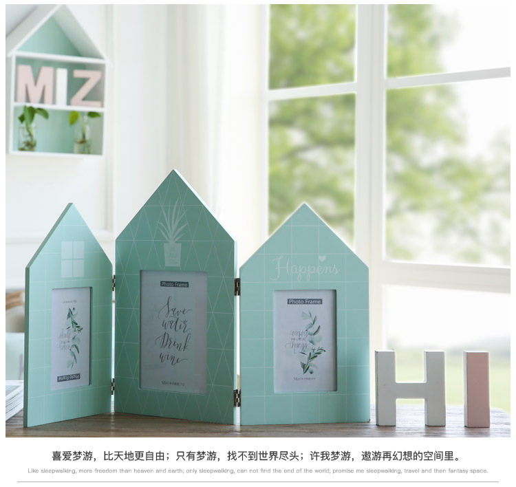 北欧清新简约三联组合相框摆台创意房子相框4寸7寸像框