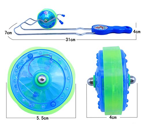 Studio : Arsmt Publisher : Arsmt Binding : Toy Product Description Note:Please pull out the insulating sheet on gyro before use.To save power,please insert the insulating sheet when you not use for a long time. Handle colors are: blue, red, yellow, green and other colors.Random delivery. Classic toys are that top gift for boys and girls more than aged 3 years old. 1.Rail twirler use magnets adhere the plastic wheel to the wire frame.Shaking the handle slowly turn the ball to roll.The ball only rolling in the metal frame and don't fall off no matter how fast you turn. 2.Gyro will automatically send color lights when it rotates in wheel metal shelf.It's fun and amazy toy for kids and adults. 3.You can constantly change the state of the hand-held bracket, vertical, upright, side release, flat, inverted, any angle can keep the wheel. 4.The wheels on the track free to run, rolling, to reach a terminal move forward and not fall.When the wheels leave the stent, dazzling lights will automatically shut down. 5.Wheel spinning can exercise children's ability and balance ability. Elderly people can also be used as exercise equipment. 6.The fascinating lighting effects and movement of the spinning toys have a soothing anxiety relive effect that can help curb hyperactivity and kill time. 7.Waving the wheel in the direction of the level of 90 degrees,when the gyro has rolled enough speed, the gyroscope is thrown to the ground, the gyro will rotate at high speed on the ground with a magical colorful lighting effects. The roller can catch the ground rotating gyroscope and continue to rotate at high speed. What a fun and amazing toy! Handle size: 27 * 5.5cm Gyro size: diameter 5.3cm wide: 4cm. 0