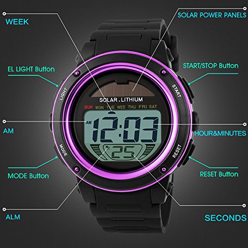 -. Title : Mastop Women Solar Power Watch Girls Boys LED Sport Watches Digital Waterproof Wrist Watch Purple