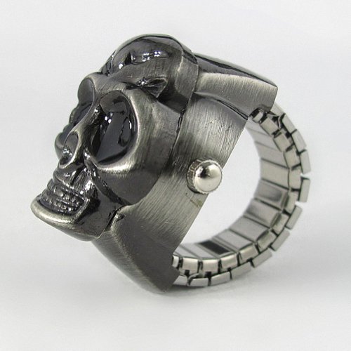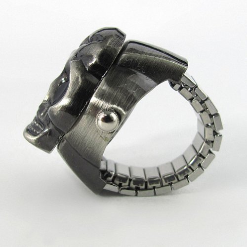 -. Title : Youyoupifa Cool Design Skull Case Flip Quartz Ring Watch (Black)
