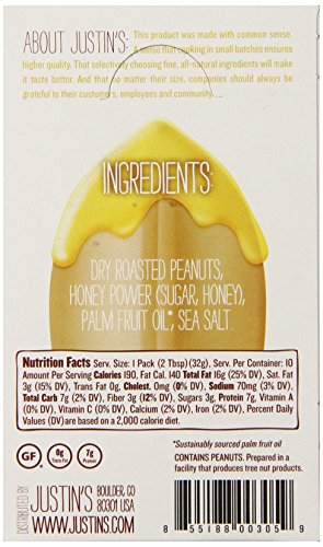 ReleaseDate : 2015-07-16 Studio : Justin's Publisher : Justin's Binding : Grocery Product Description All Justin's Nut Butters are made in small batches to preserve premium quality standards and fresh taste, using the highest quality natural and organic ingredients that are sustainably harvested and found as locally as possible. Our small batch grinding process means that every batch will have a unique and slightly different taste from the last. The mission at Justin’s is making the foods we love extraordinary, with an uncompromised spirit of innovation, sustainability and community. Our products are made with common sense. A sense that cooking in small batches ensures higher quality. That selectively choosing fine, all-natural ingredients will make it taste better. And that no matter their size, companies should always be grateful to their customers, employees and community. 0