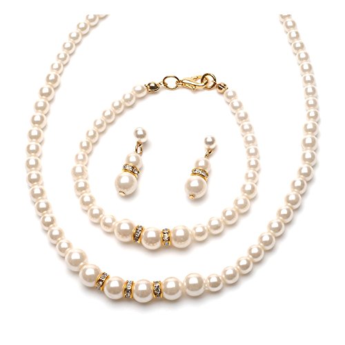 -. Title : USABride Simulated Pearl & Gold-Tone Rhinestone Rondelle Jewelry Set, Necklace Bracelet & Earrings 549-G