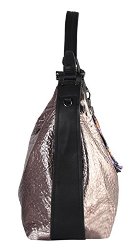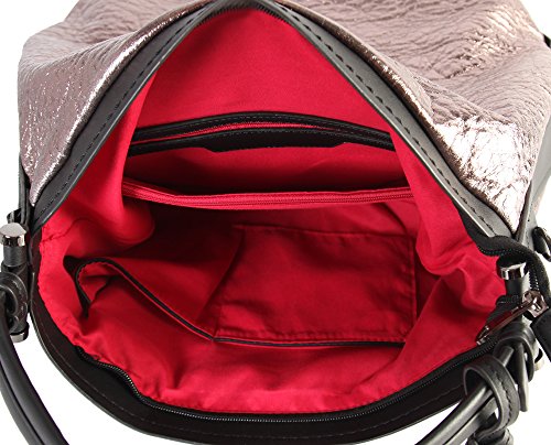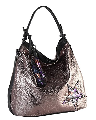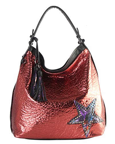 -. Feature : This handbag comes in 6 different colors: Black, Bronze, Gold, Pewter, Silver, and Wine. / High Quality PU Leather Metallic Color Star & Tassels Décor Hobo Handbag. / High Quality Fabric Lined Interior with Multiple Interior Pockets. 2 Compartments with 2 Zippered Pockets and 2 Open Pockets Inside. 1 Zippered Pocket Outside in the Back. / Approximate Size info: Length 13" x Width 7" x Height 14.4" Material: PU Faux Leather. Top Zipper Closure. / Color showing in other color is to show the different variation angles of the handbag. The actual bag ship, will be the one your purchased.
