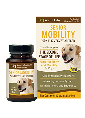 -. Binding : Misc. -. Brand : Wapiti Labs -. Department : dog-vitamins-supplements -. EAN : 0689076806053 -. Feature : Recommended for dogs over 7 years and cats over 10 years to support and maintain overall health / Helps to maintain synovial fluid that lubricates the joints / Supports normal function and health of the kidneys and eyes -. Label : Wapiti Labs -. Manufacturer : Wapiti Labs -. Model : 1600 -. MPN : 1600 -. NumberOfItems : 1 -. PackageQuantity : 1 -. PartNumber : 1600 -. ProductGroup : Pet Products -. ProductTypeName : PET_SUPPLIES -. Publisher : Wapiti Labs -. Size : 30 g -. Studio : Wapiti Labs -. Title : Wapiti Labs Dog Senior Mobility Formula, 30 gm -. UPC : 689076806053