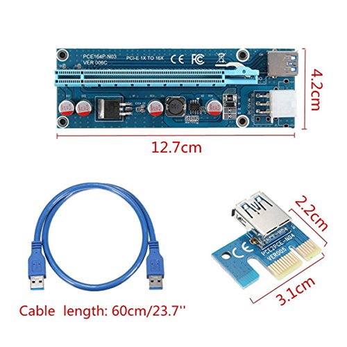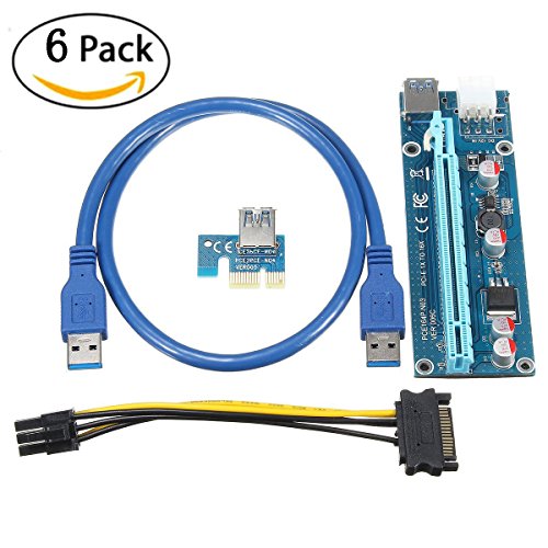 Supercope - PCI-E 006C 16x to 1x Powered Riser Adapter Card (6 Pack) w/ 60cm USB 3.0 Extension Cable & 6-Pin MOLEX to SATA Power Cable - GPU Riser Adapter - Ethereum Mining ETH