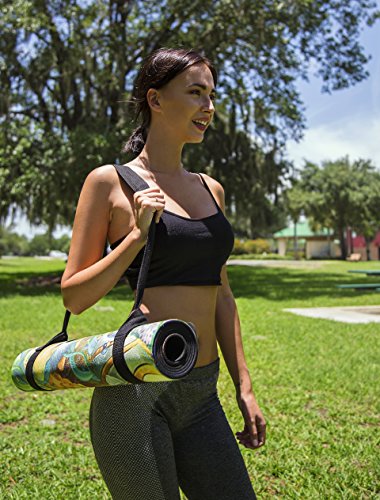 Premium Design Yoga Mat + Carrying Strap, Non-Slip Grip, Eco Friendly: 100% Natural Tree Rubber + Printed Microfiber Yoga Towel Layer