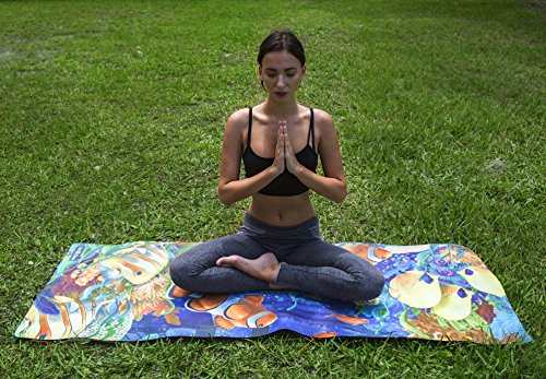 - HIGH QUALITY ECO FRIENDLY MATERIALS: Base made of 100% natural tree rubber and luxurious top of ultra absorbent microfiber towel layer with water based fade resistant inks.