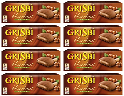 Vicenzi: "Grisbi Hazelnut" Italian Shortcrust Biscuits filled with Hazelnut Cream 5.3 Ounces (150g) Package (Pack of 8) [ Italian Import ]