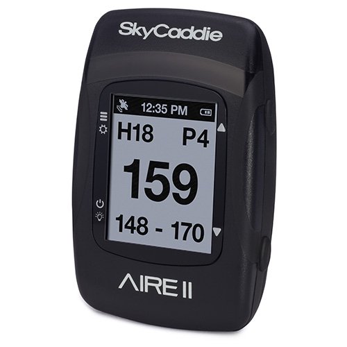 The SkyCaddie aire II with no annual fees required. Compact size, ultra-light so you can wear the aire II on your belt or hang it off your golf bag. Not everyone prefers to play golf wearing a watch making the aire II your ideal golf GPS choice. The SkyCaddie aire II comes loaded with stroke-saving features and is ready-to-play with over 35,000 error-corrected courses. Layup distance off the tee and into the green on long par 4's and par 5's makes club selection easy. Digital scoring and measure any shot to know how far you hit each club. Its intelligent automation (auto-course select, auto-hole advance and auto-distance) keeps your hands free and mind focused on playing your best golf. Upgrade to a nominally-priced skygolf membership Plan and your SkyCaddie aire II will also have advanced course management features, such as our proprietary intelligreen technology giving you the exact shape of the green and critical distance for up to 40 true ground targets (hazards, bunkers, water, end of fairway, creeks and more) per hole! don't compromise your game, get the most trusted rangefinder in golf.Feature
