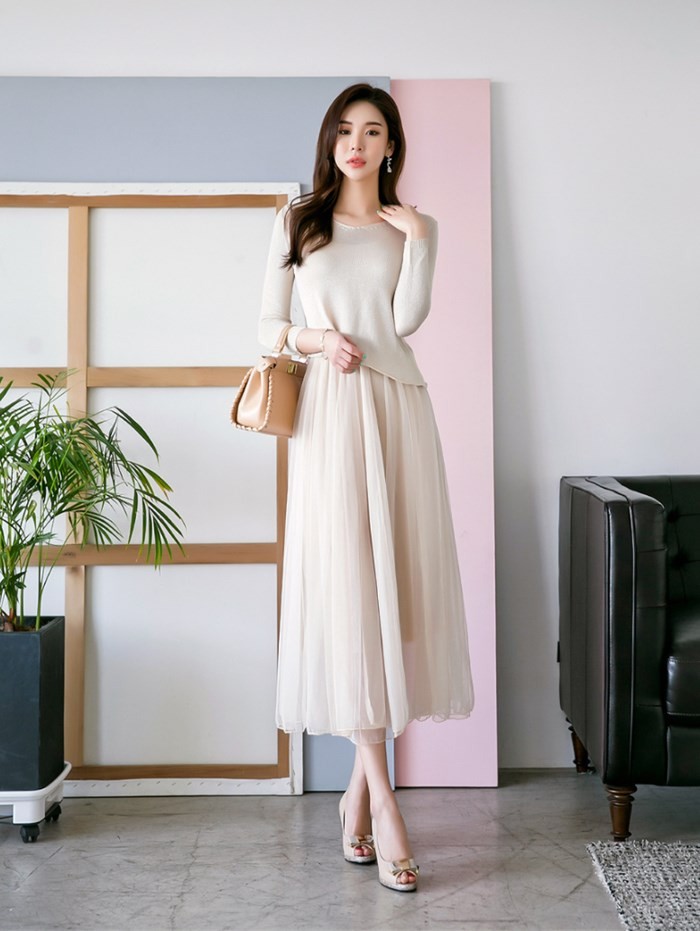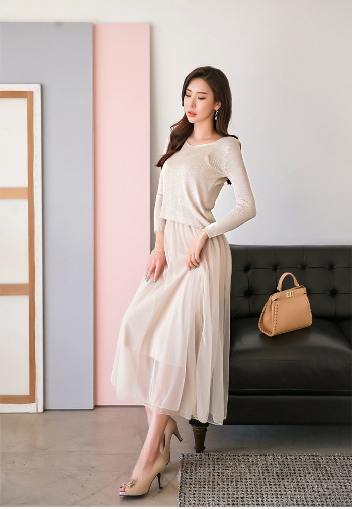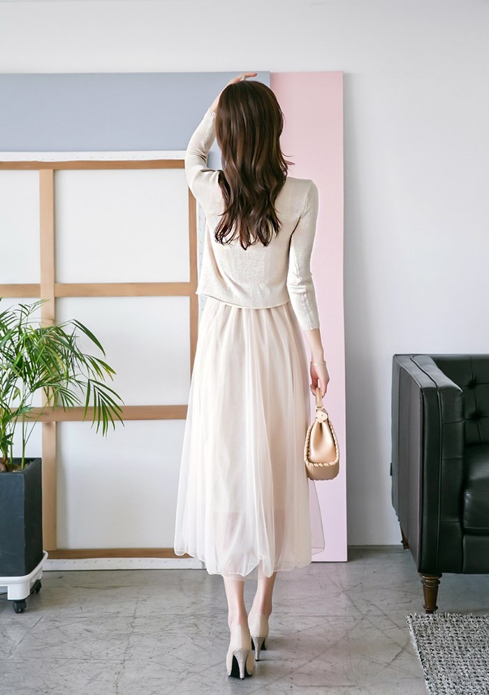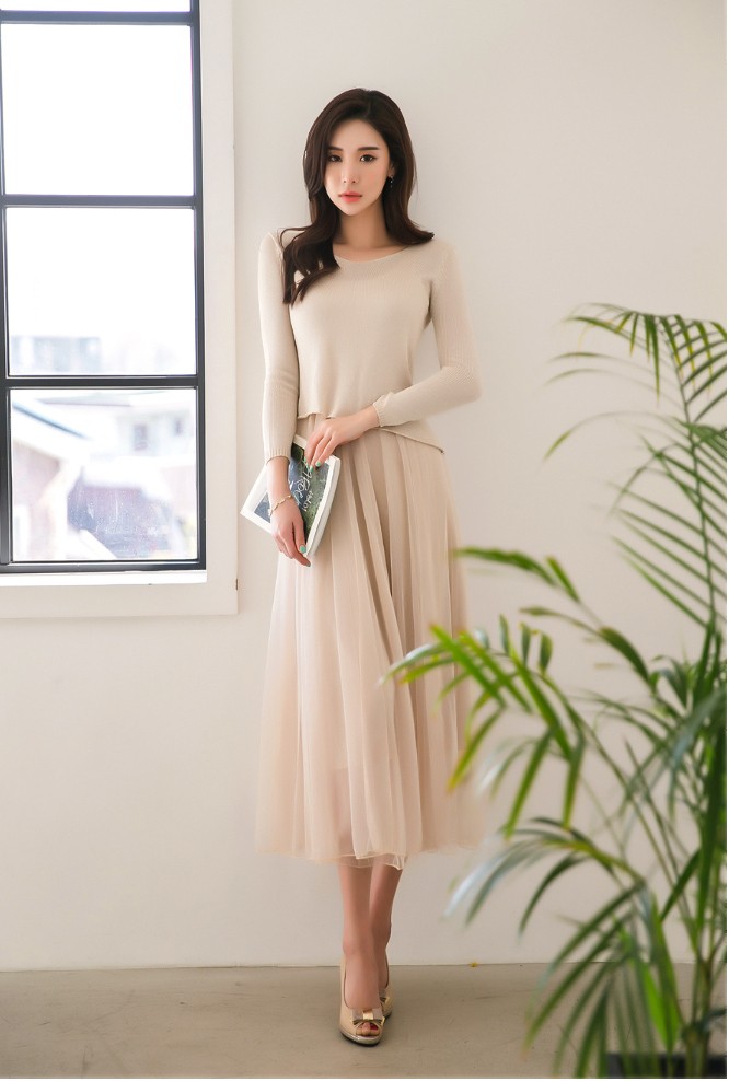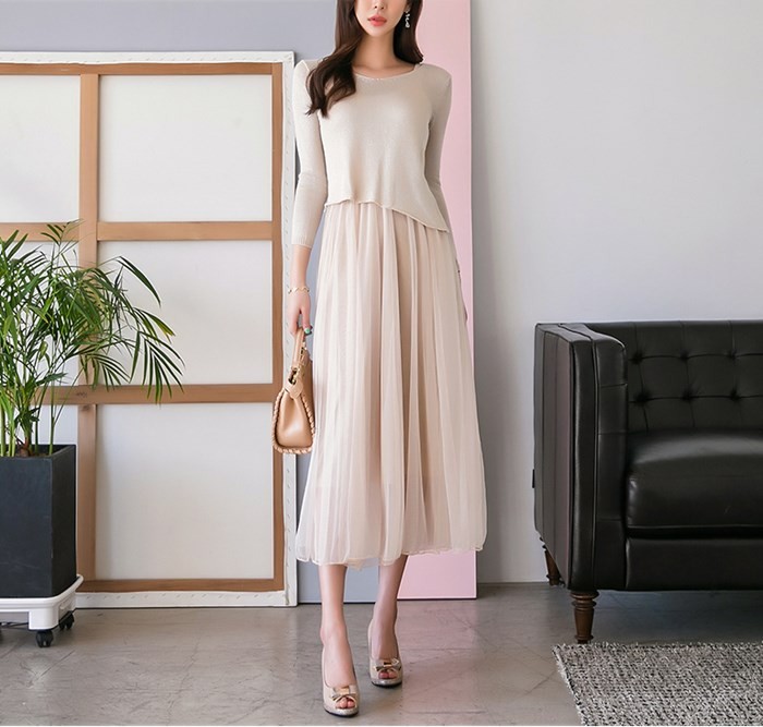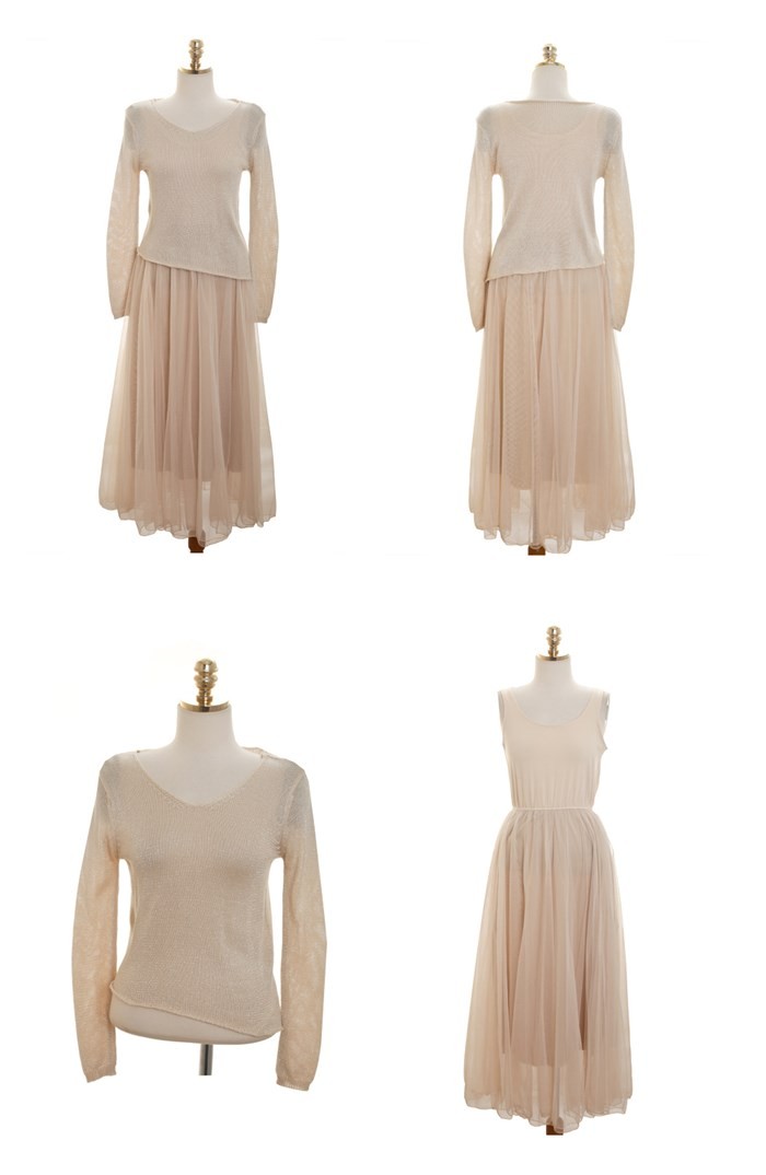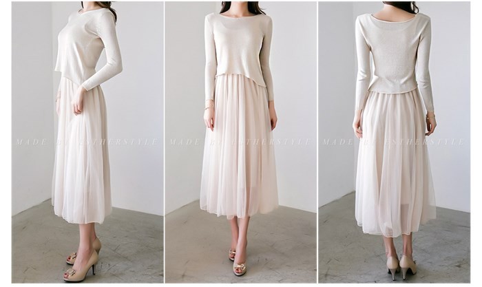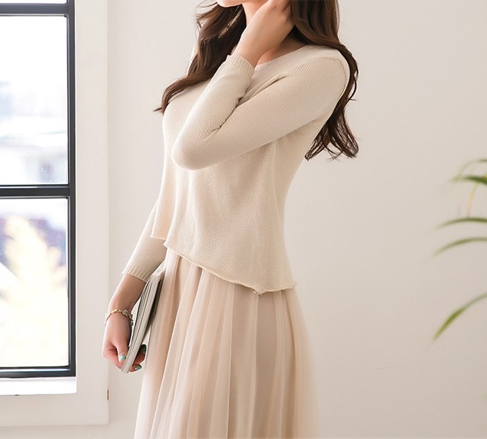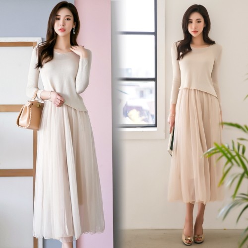 商品名:ワンピース&トップス セット ニット ノースリーブ 膝丈 フレア