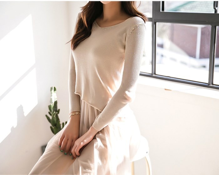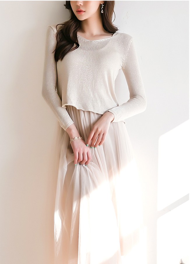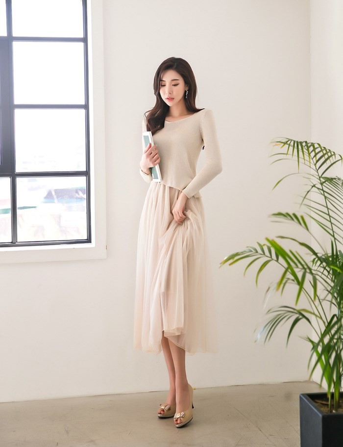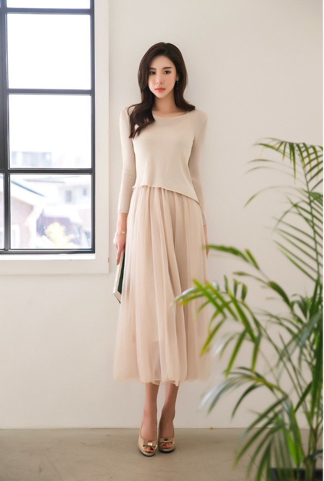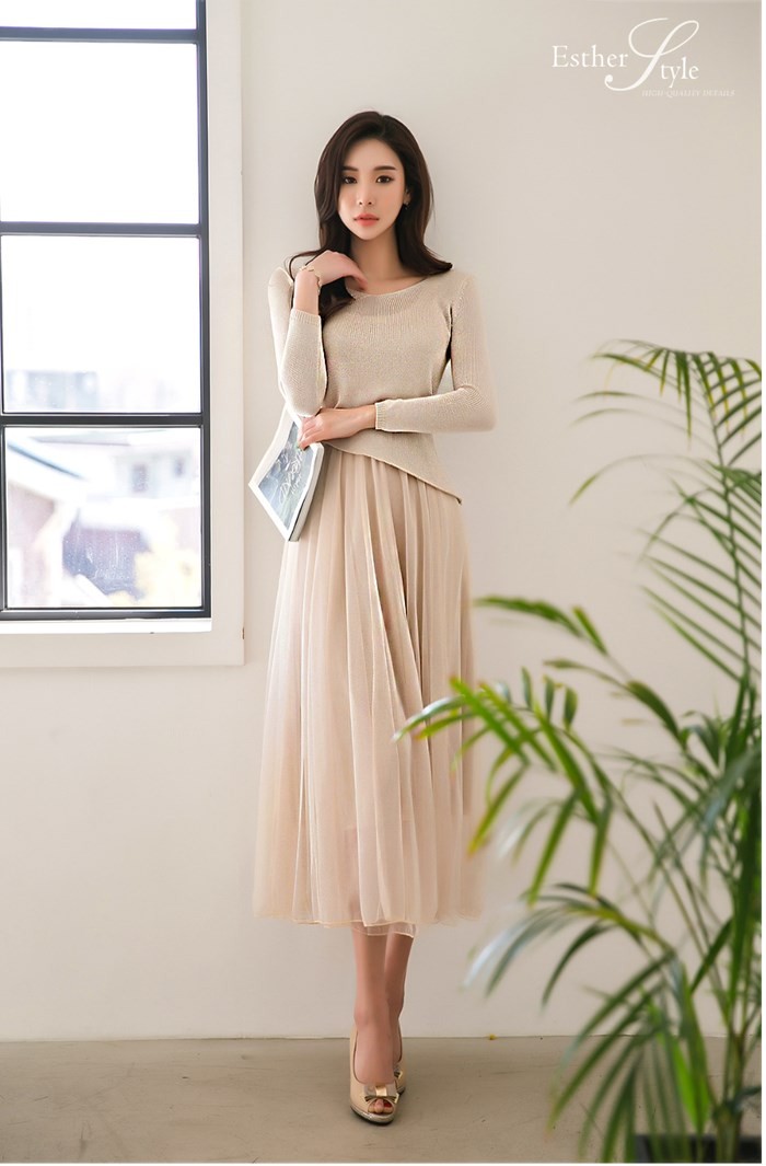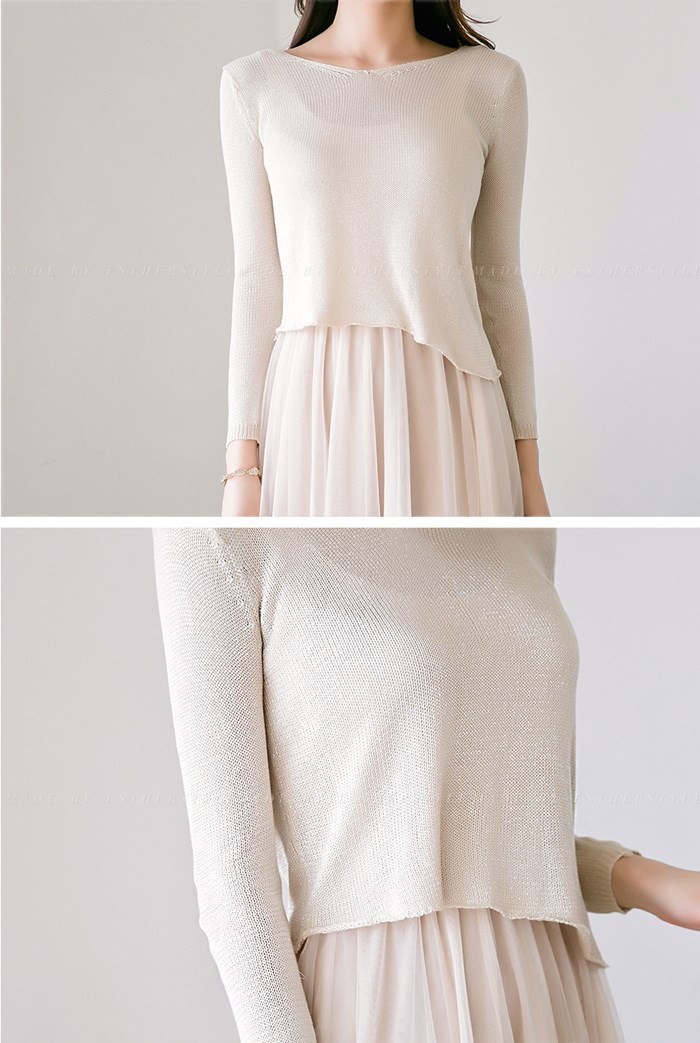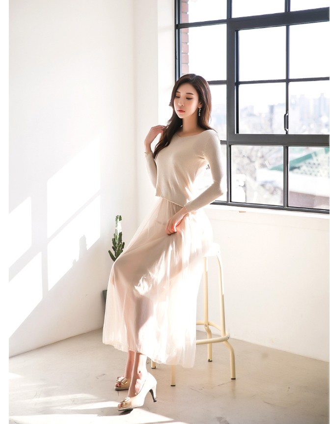 商品名:ワンピース&トップス セット ニット ノースリーブ 膝丈 フレア