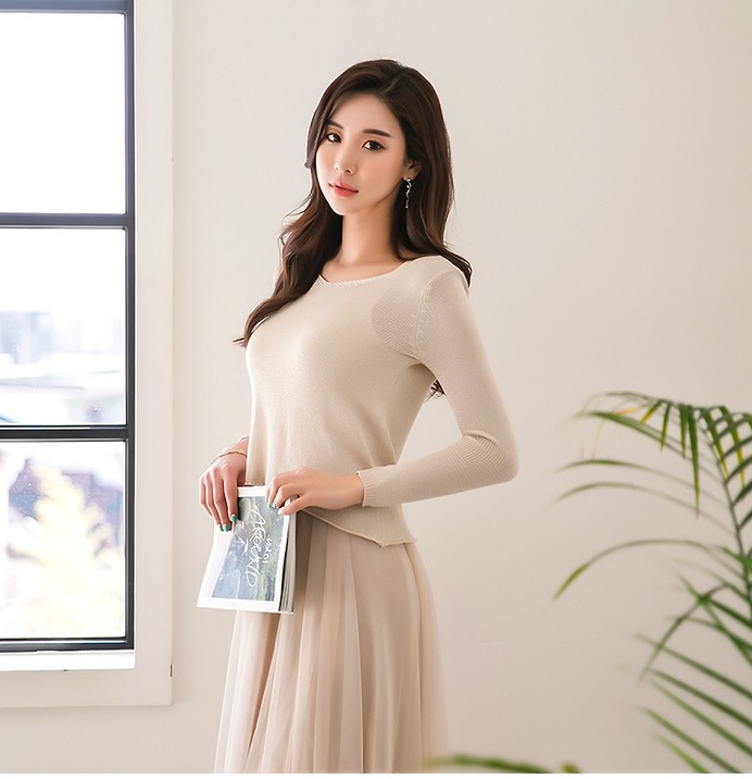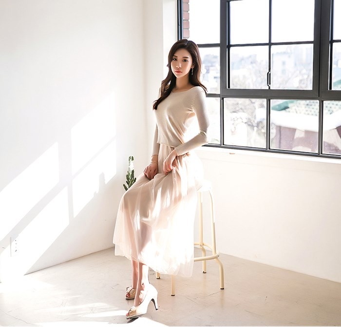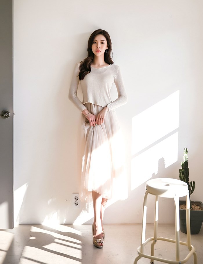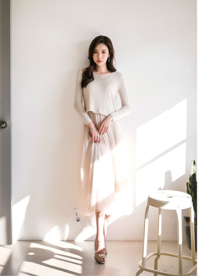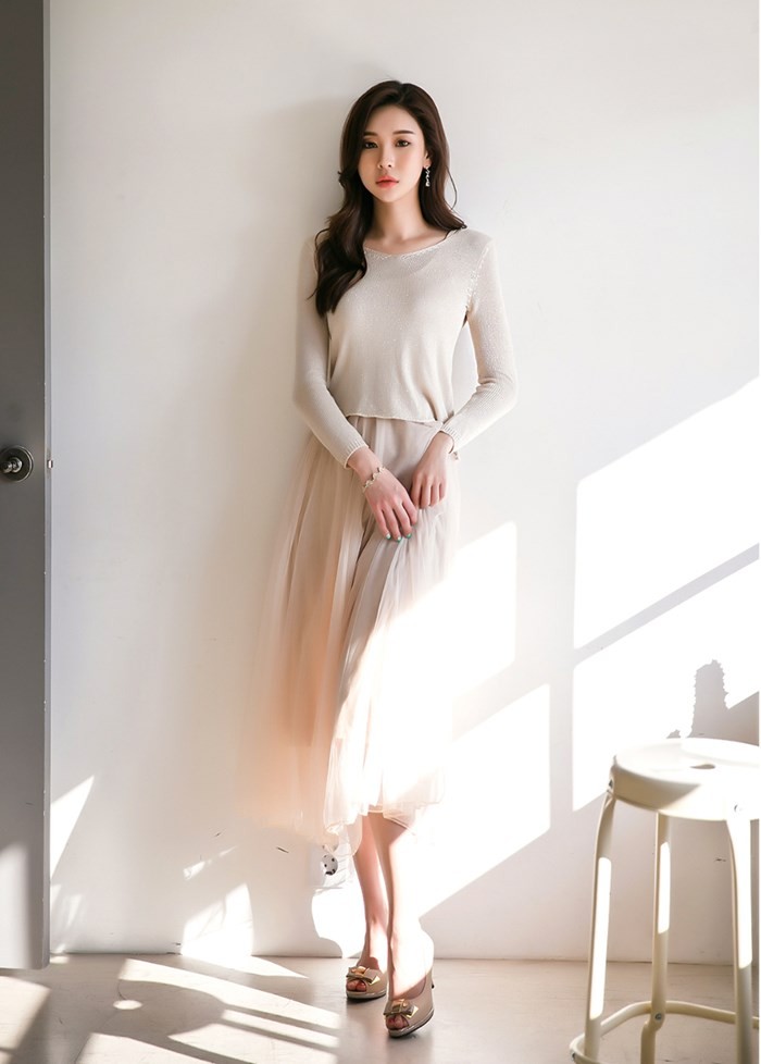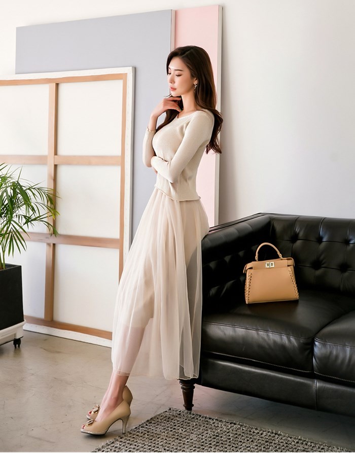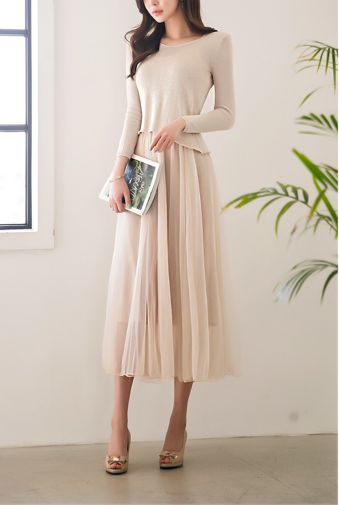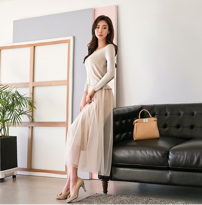 商品名:ワンピース&トップス セット ニット ノースリーブ 膝丈 フレア